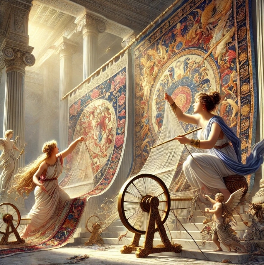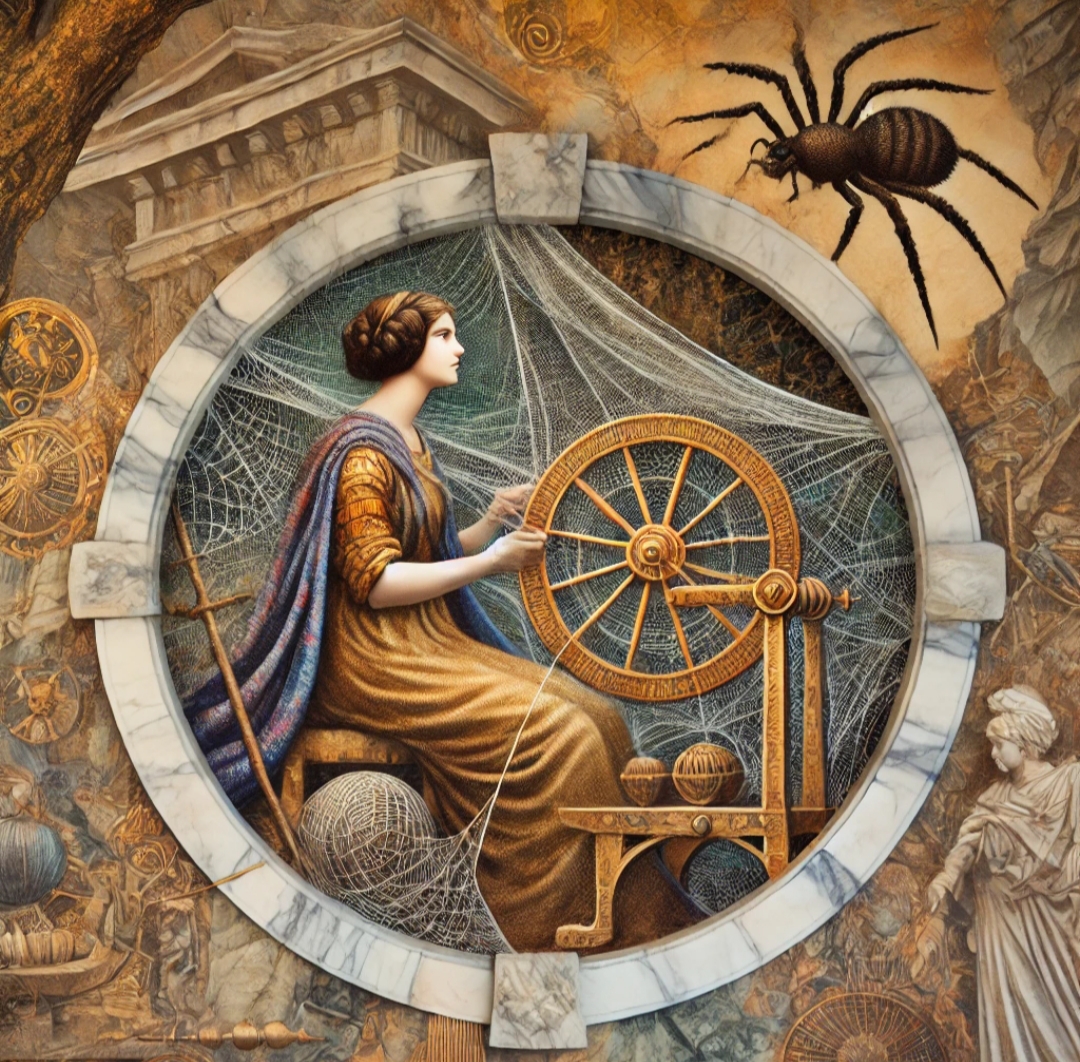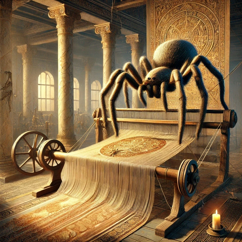 Arachne war laut griechischer Sage eine begabte Weberin aus Lydien, die so geschickt im Weben war, dass sie sich mit der Göttin Athene messen wollte. Stolz auf ihre Fähigkeiten, wagte sie den Wettstreit, bei dem beide kunstvolle Wandteppiche schufen. Arachne übertraf die Göttin in technischer Meisterschaft, doch Athene, erzürnt über ihren Hochmut, zerstörte ihr Werk. In Verzweiflung erhängte sich Arachne, doch Athene verwandelte sie in eine Spinne, damit sie und ihre Nachkommen für immer weben konnten. Die Sage gilt als Warnung vor Hybris und als Ursprung der Spinnenmetapher. (ChatGPT)