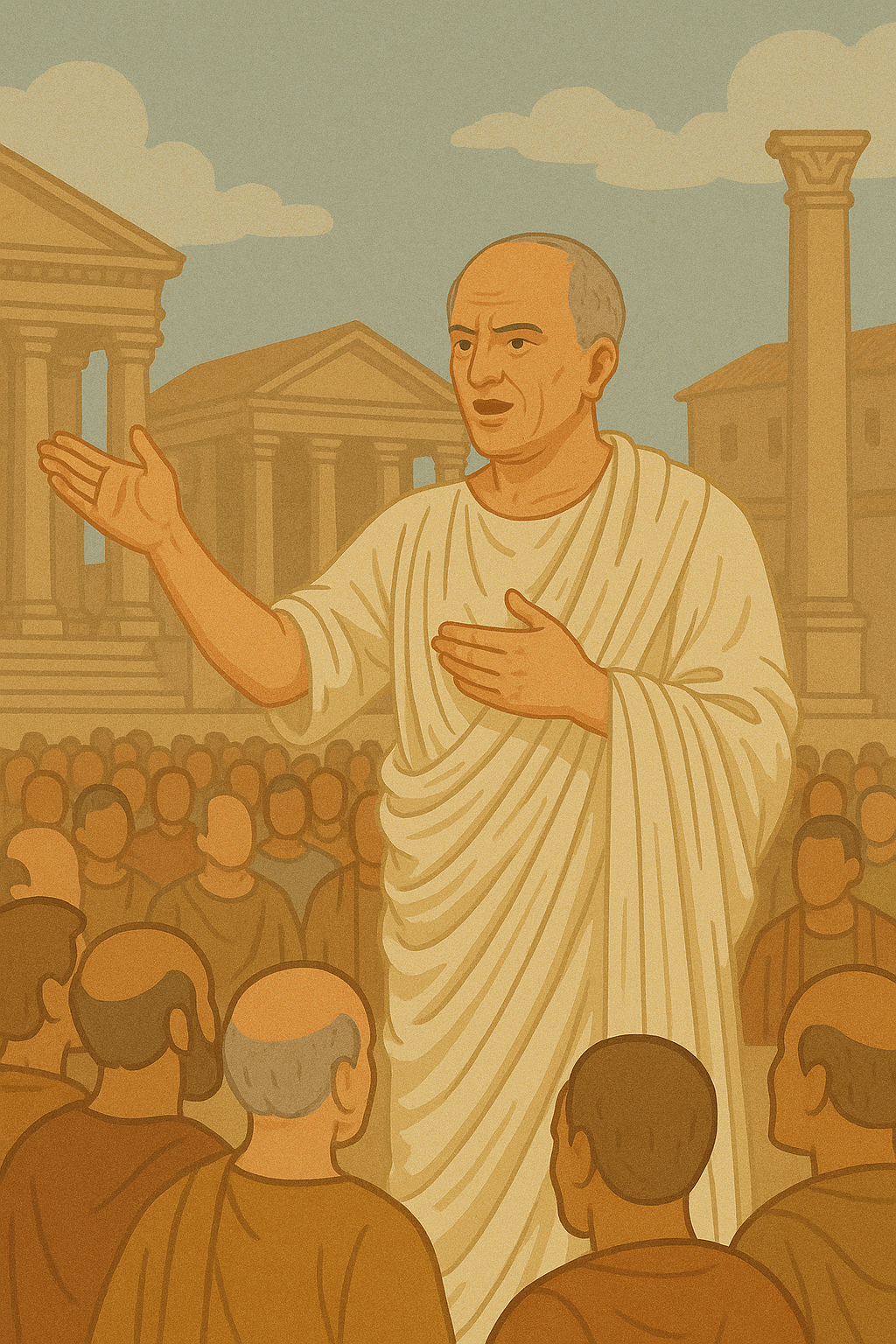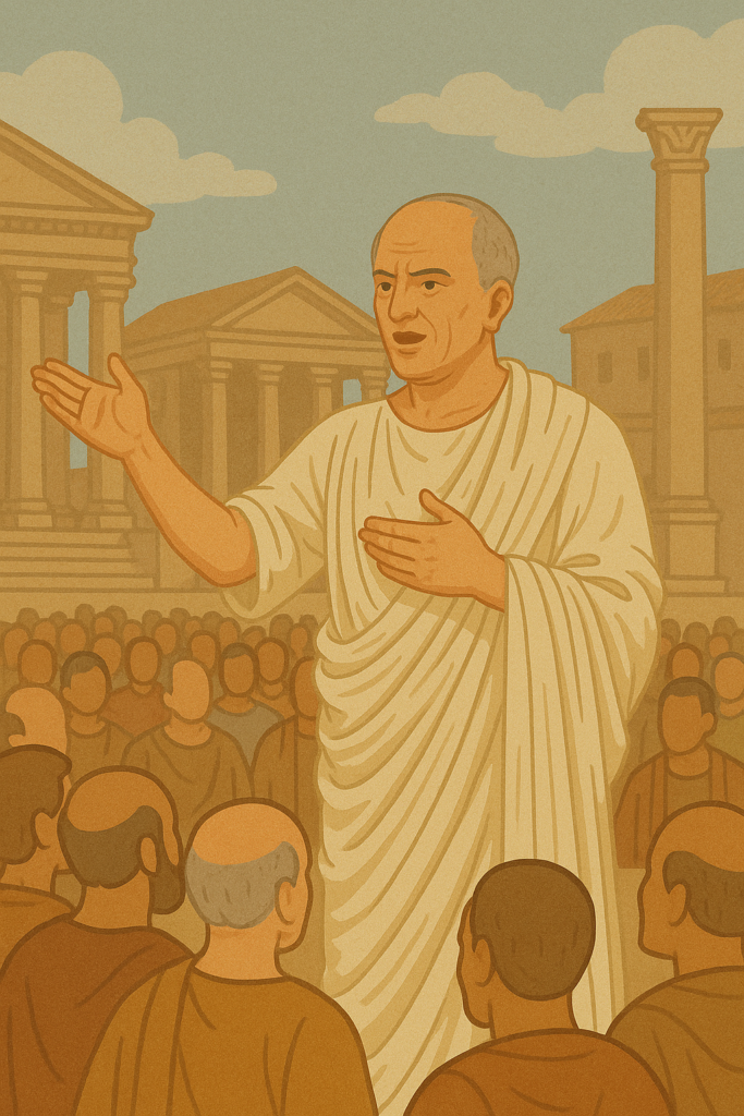Die antike Rhetorik war die Kunst der wirkungsvollen Rede und Argumentation, besonders in Politik, Recht und Bildung des griechischen und römischen Kulturraums. Sie lehrte Techniken wie Überzeugungskraft (persuasio), Stilmittel (figurae) und den Aufbau von Reden (inventio, dispositio, elocutio, memoria, pronuntiatio). Philosophen und Redner wie Aristoteles, Cicero oder Quintilian prägten theoretische Grundlagen, die das öffentliche Leben, Gerichtsverhandlungen und politische Debatten entscheidend beeinflussten. Rhetorik verband praktisches Können mit ethischer und ästhetischer Reflexion. (ChatGPT)